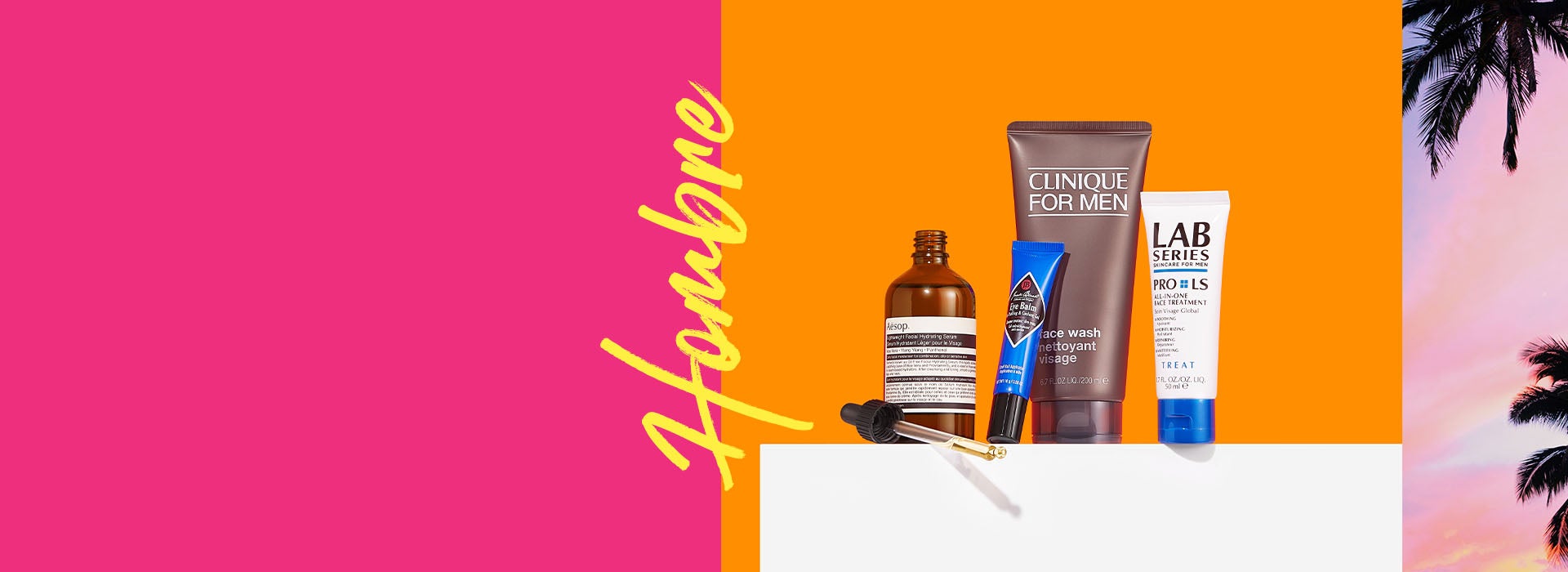 Aquí puedes encontrar todo para él, desde productos para el afeitado hasta fragancias para el cuidado de la piel. Con marcas como Clinique, dogo y American Crew.